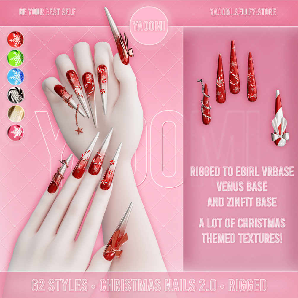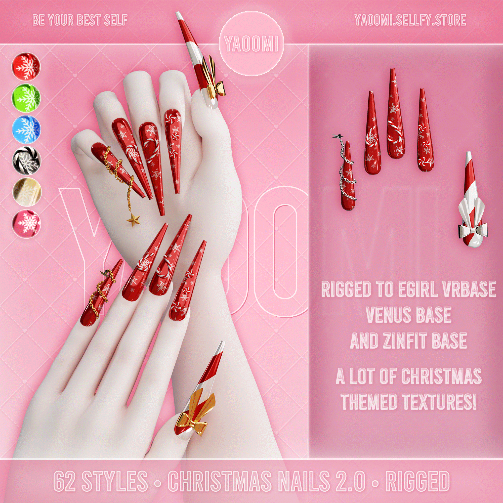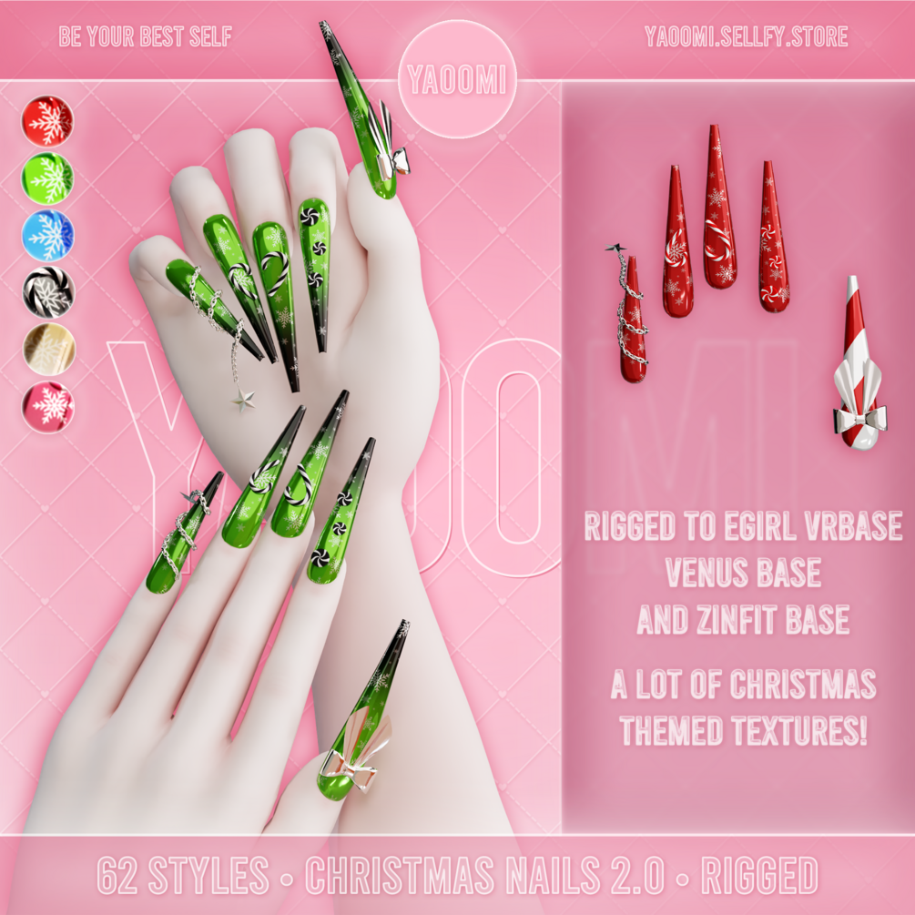 ❀ Nails with charms - 3 materials, 1 mesh, 62 styles, 8 bones (Chain + Star Charm), 29,920 triangles total.