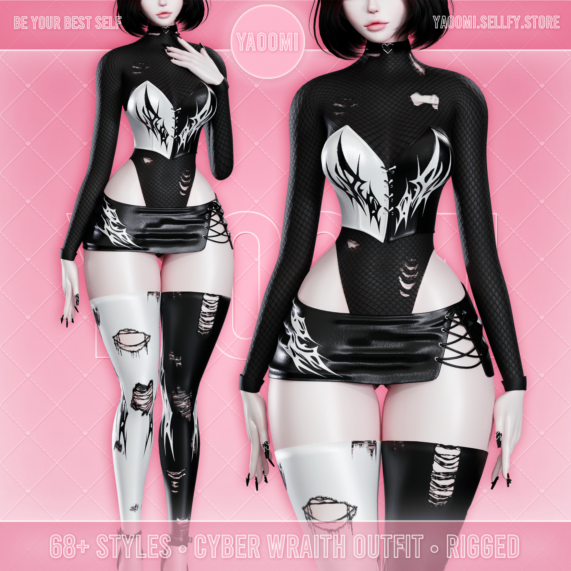 ❀ Bodysuit, Corset, Skirt, Stockings, Choker - 6 materials, 5 meshes, 68+ styles, 42,906 triangles total.