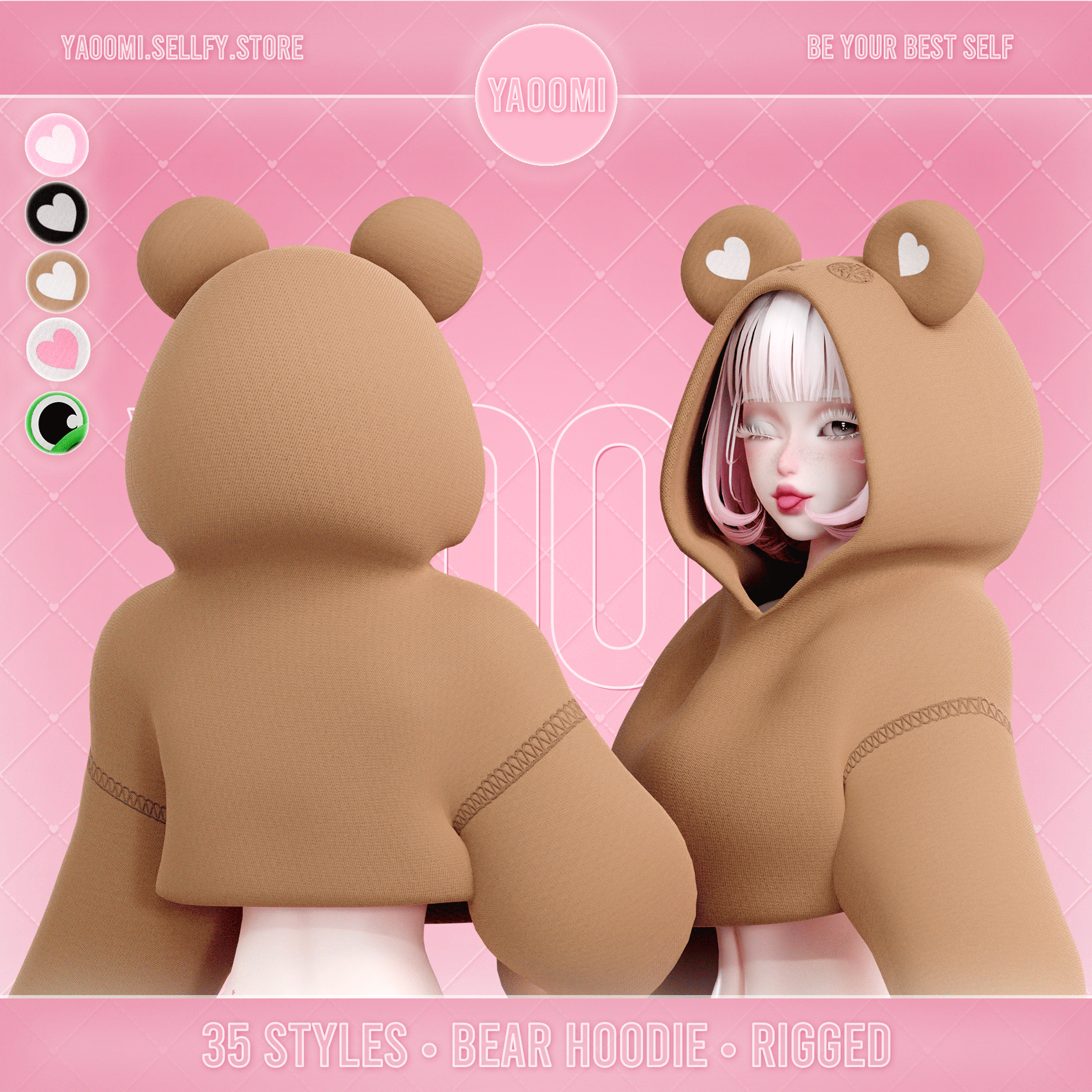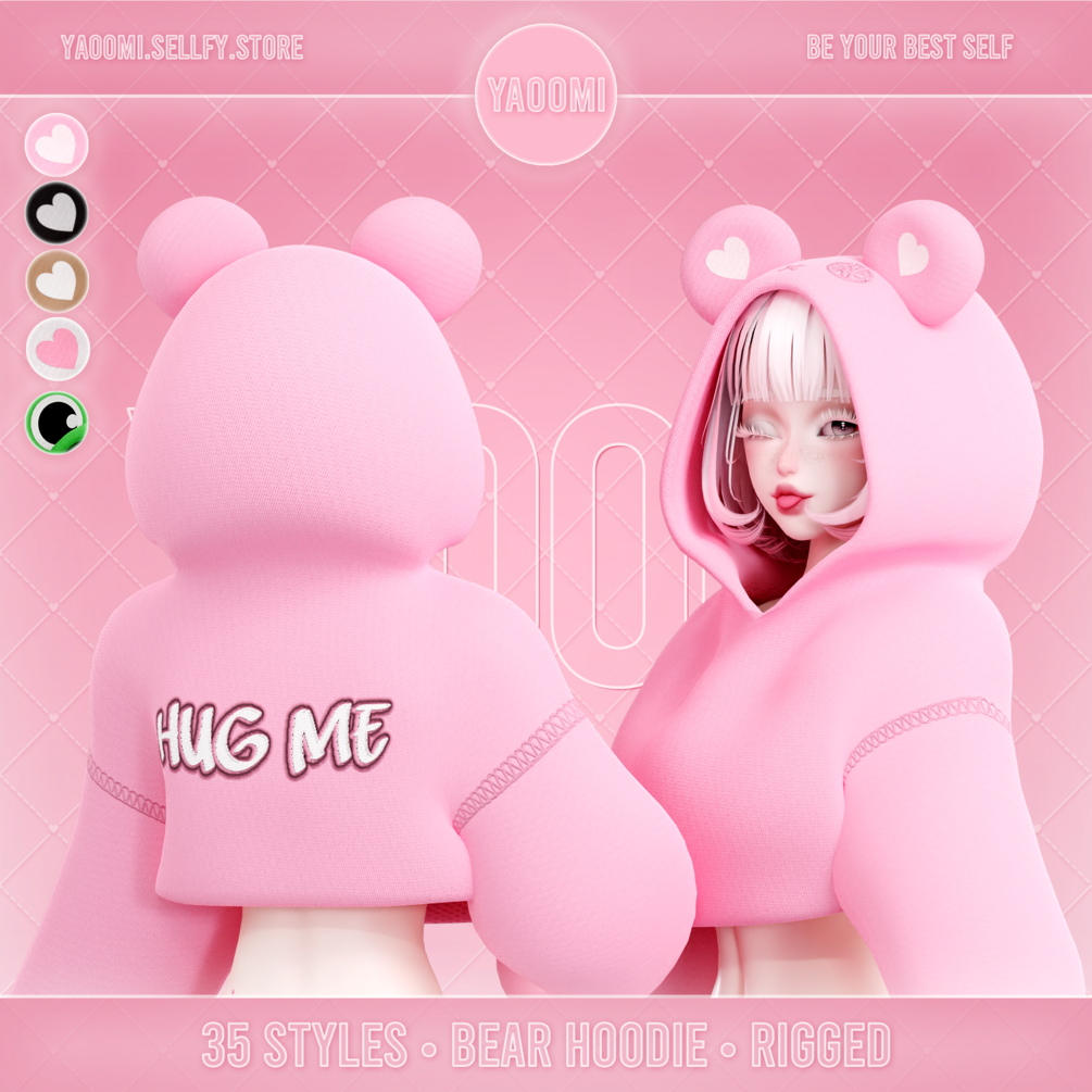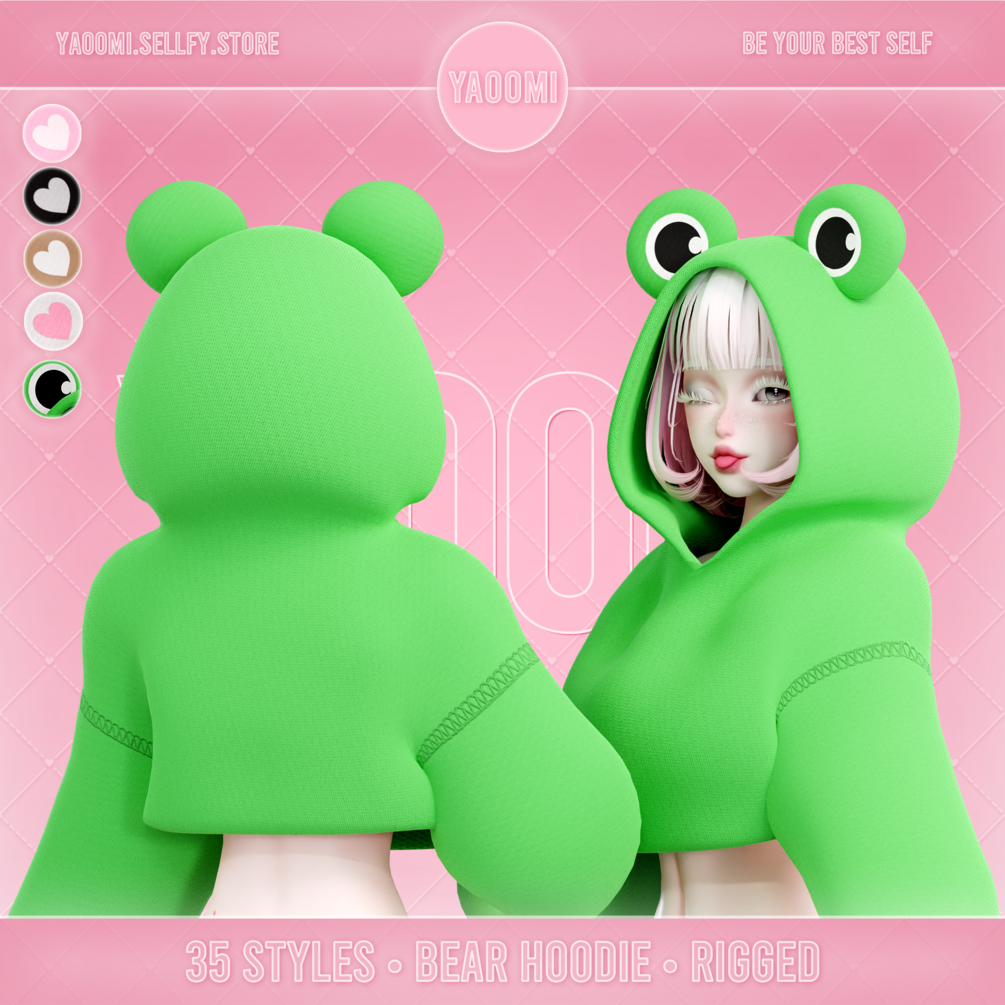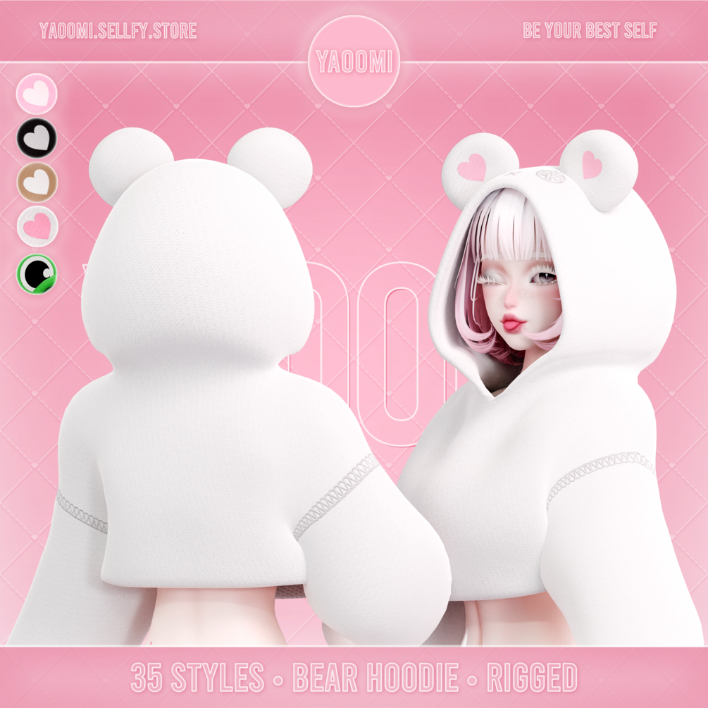 ❀ Hoodie with ears - 2 materials, 2 meshes, 35 styles + No Stitching versions (22,208 triangles)